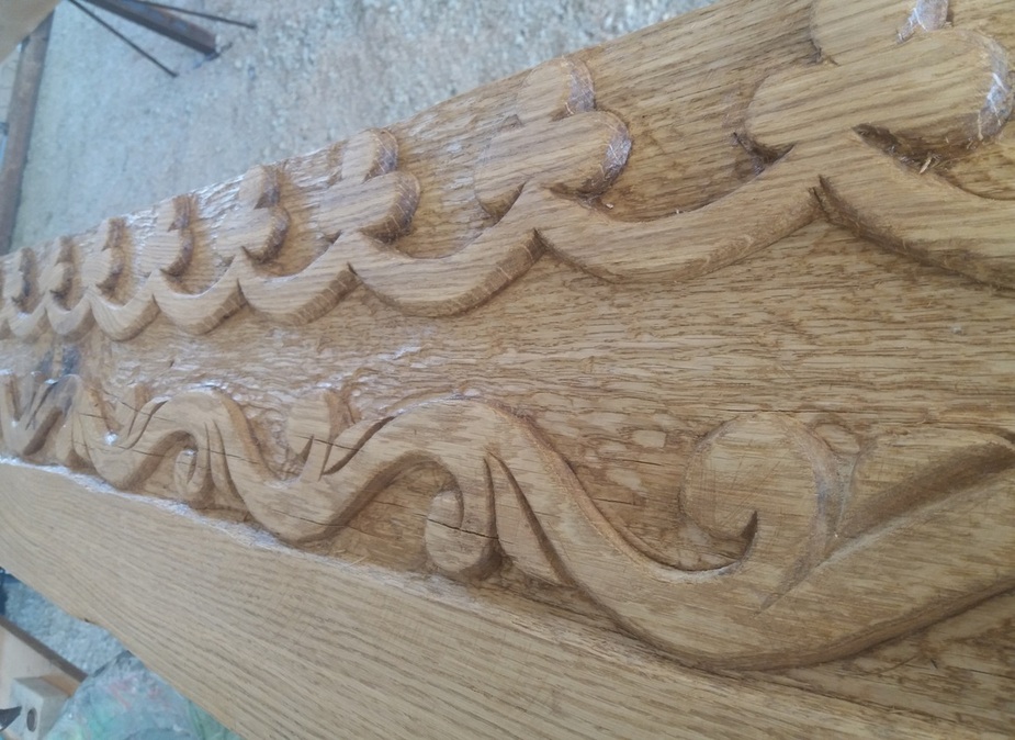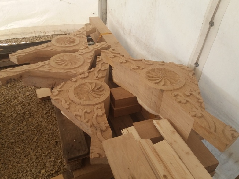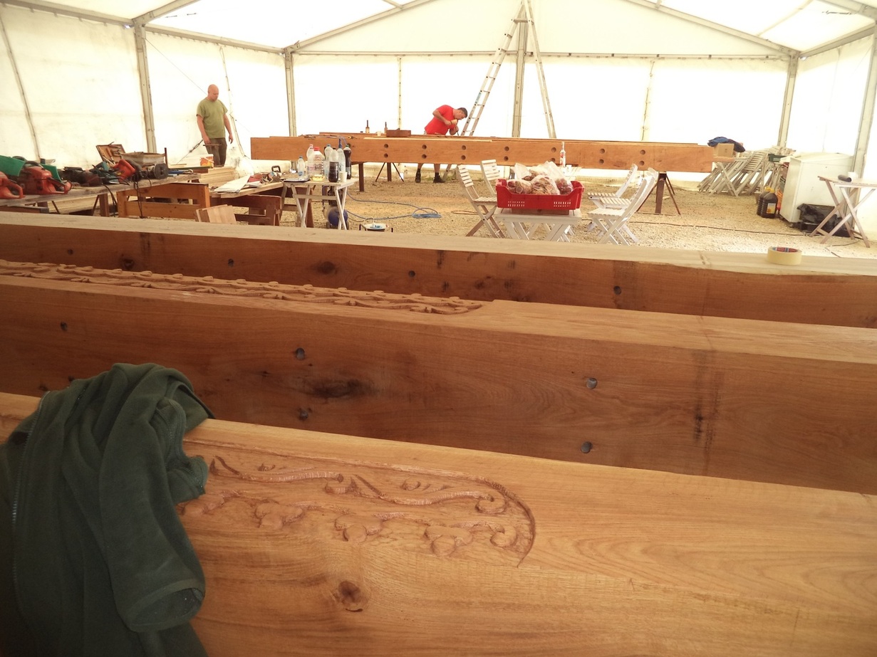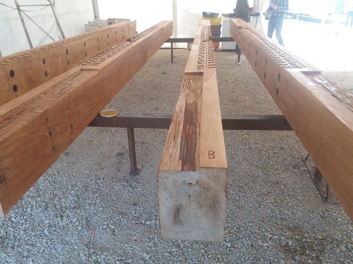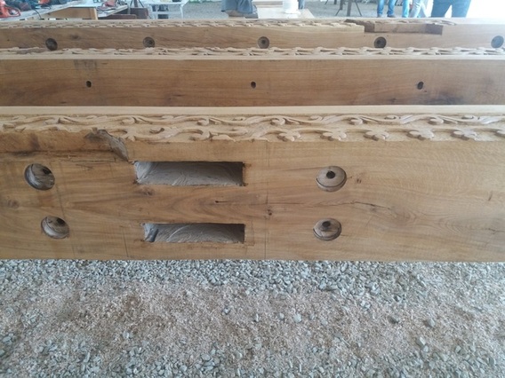 Itt már elindult a munka, a csapolások fészkei is elkészítve, a faragások egy része is már látszik