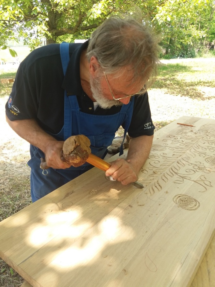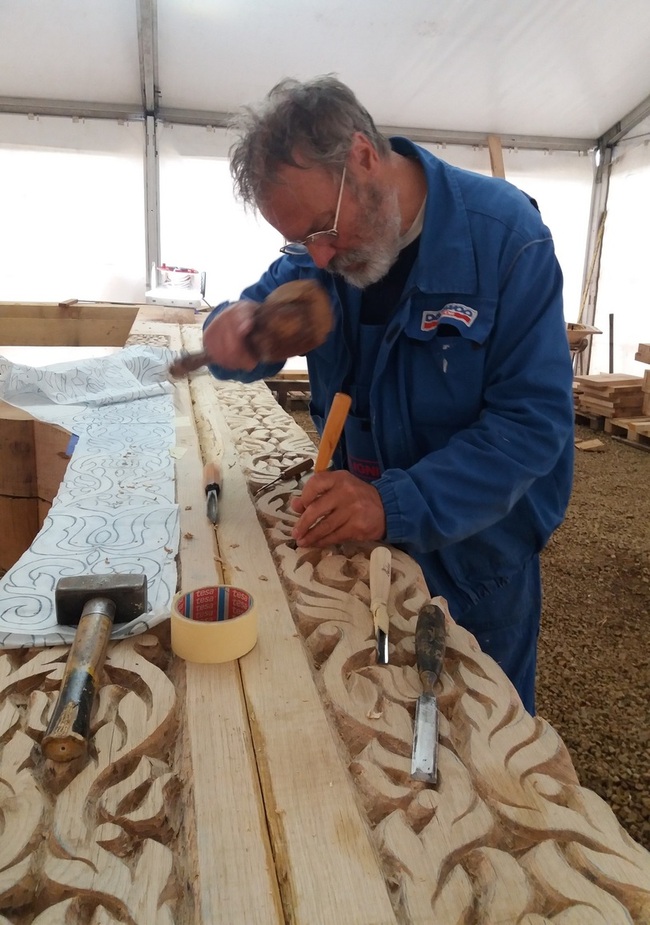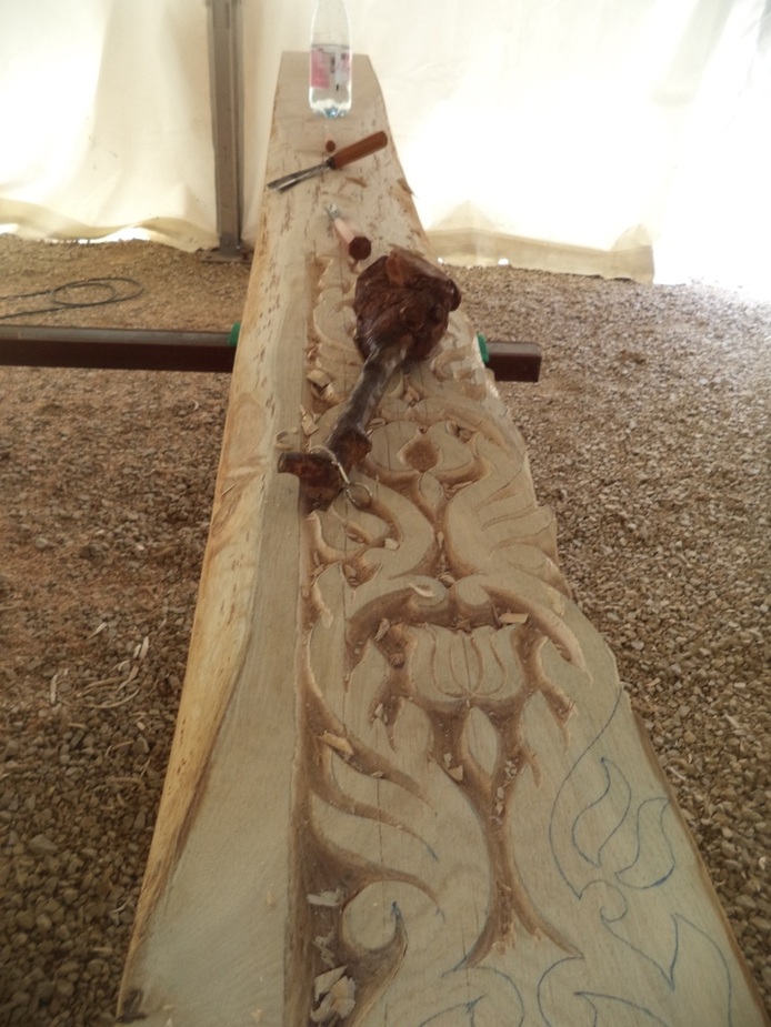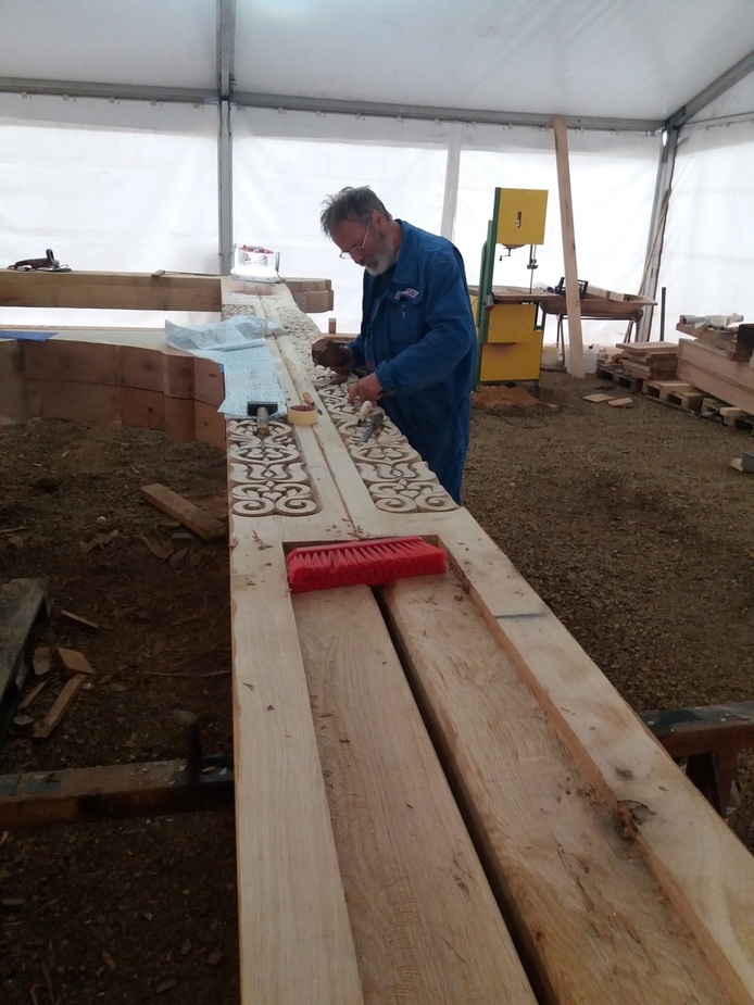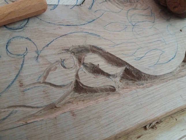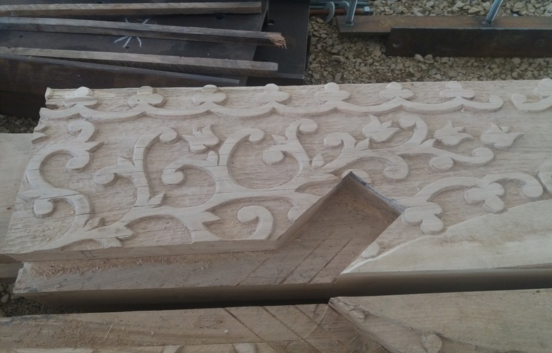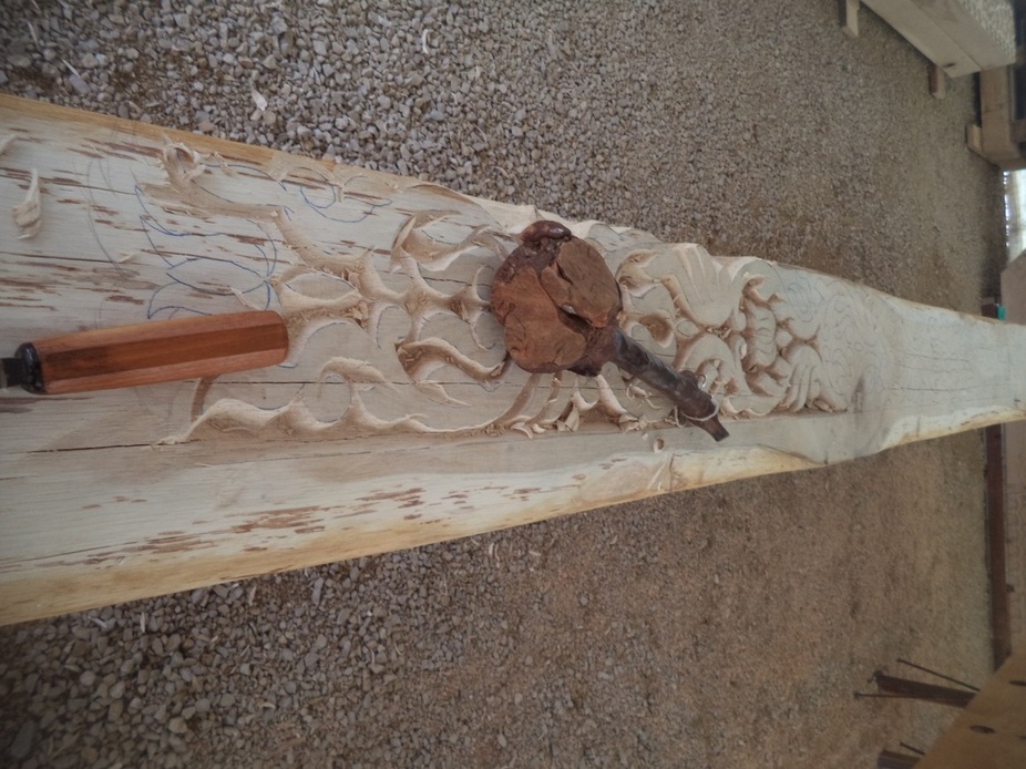 Itt már elindult a munka, a csapolások fészkei is elkészítve, a faragások egy része is már látszik