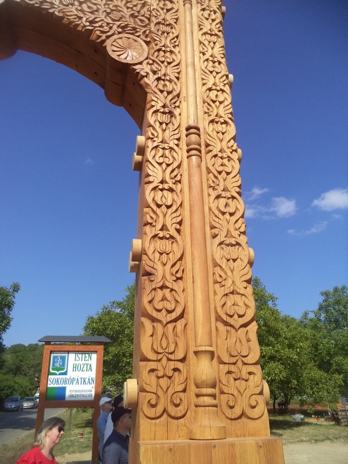 Aztán Sokorópátkán, Pannonhalma mellett el is készült a világ legnagyobb Székelykapuja. Az ötlet Vajda Péter helyi vállalkozótól származik, aki több környékbeli vállalkozóval összefogva indította el az építkezés folyamatát