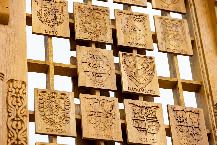 A kaputükrökbe a 64 történelmi vármegye címerei kerültek